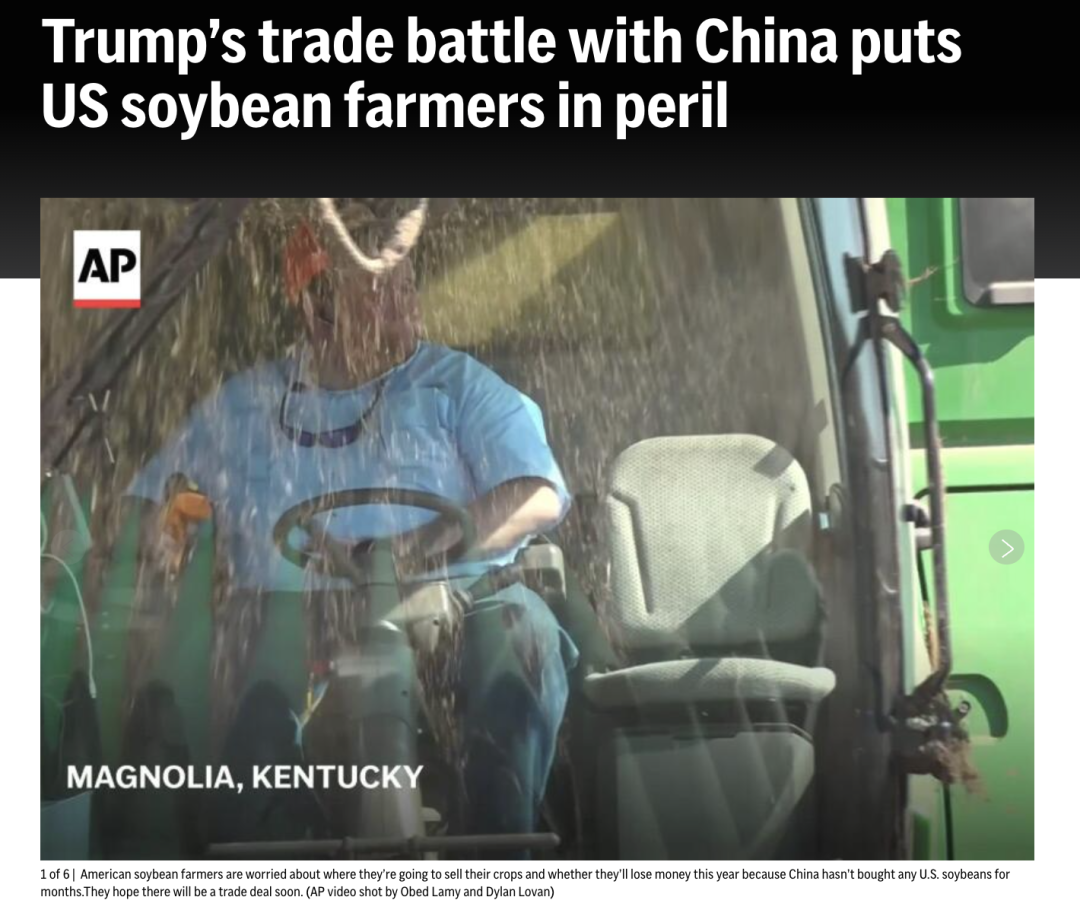 美方明知如此,还要营造这样的“叙事烟幕”,背后其实更多是对贸易战给美国大豆等农业产业造成伤害的无计可施。